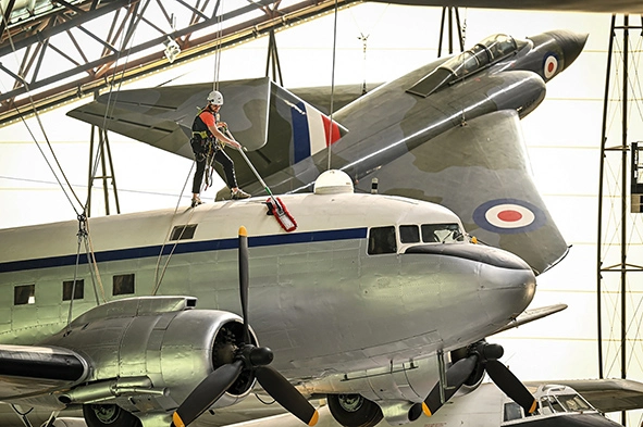 DUSTBUSTERS WITH a head for heights are carrying out the annual suspended aircraft spring clean at the RAF Museum Midlands.